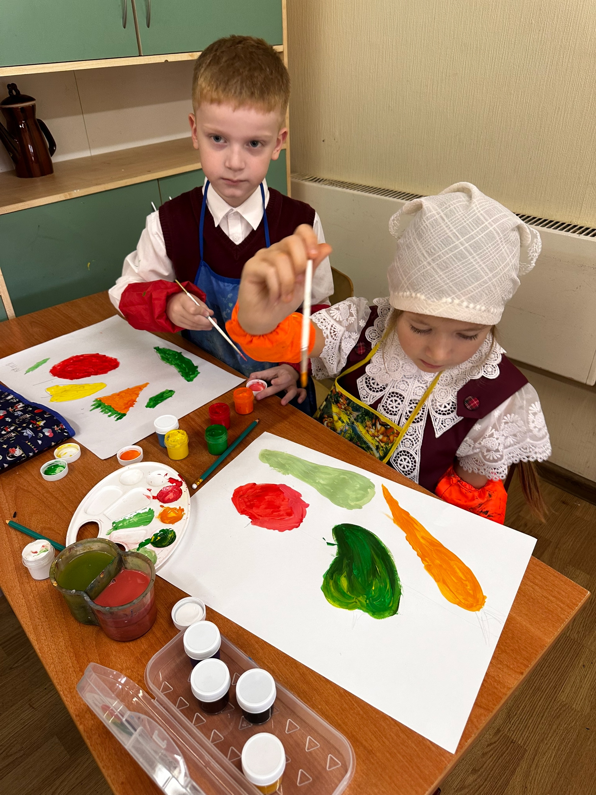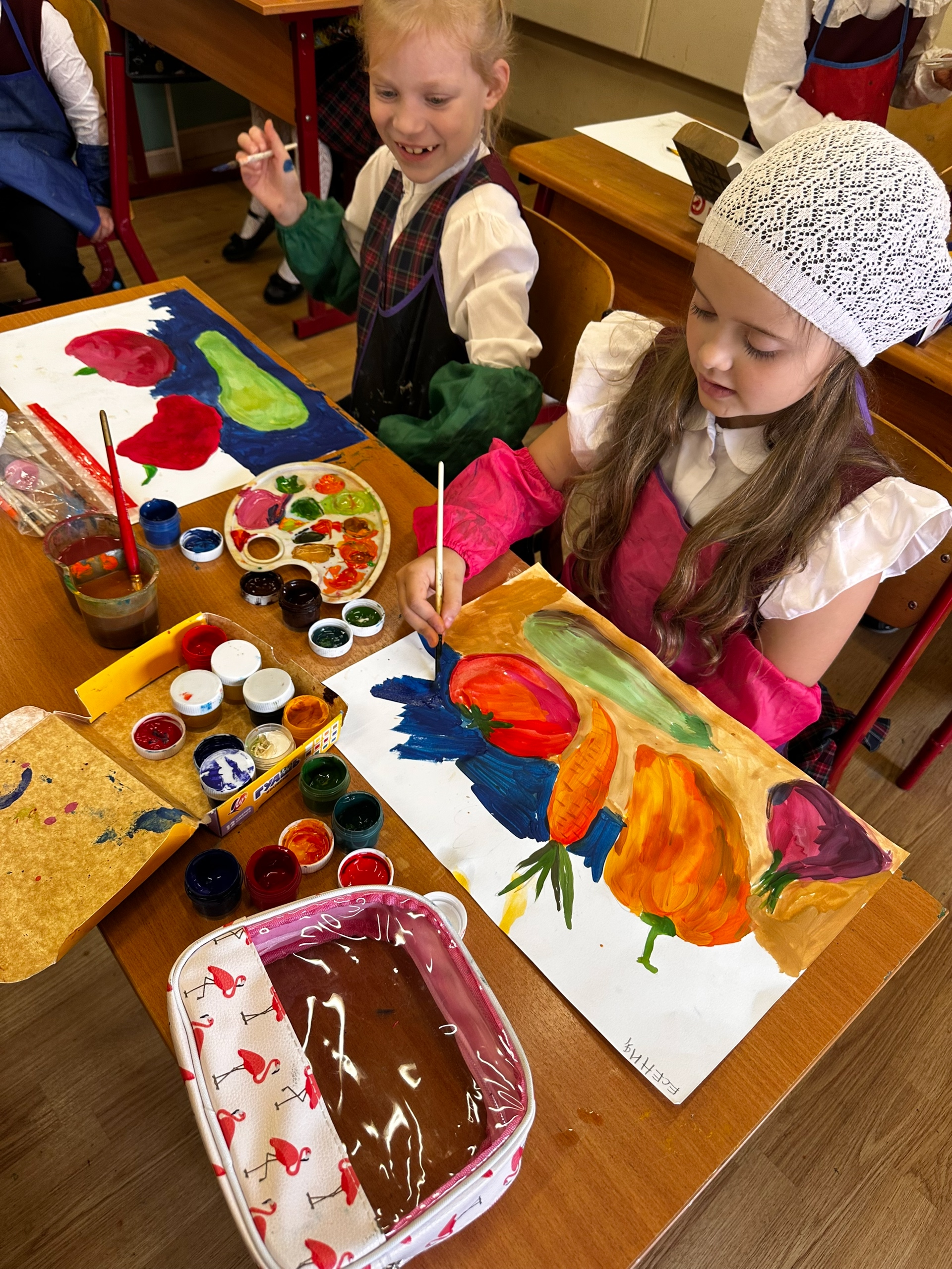 Первый класс на уроках ИЗО начал изучать осенние овощи.