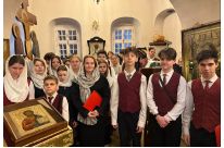 13 февраля в храме Живоначальной Троицы усадьбы Свиблово была совершена детская Божественная Литургия. Богослужение совершил духовник школы протоиерей Сергий Рождественский.